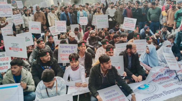 Tejgaon College students today blocked the Farmgate intersection, demanding justice for a fellow student, Sakibul Hasan Rana, who died on December 10, four days after suffering injuries in a dormitory